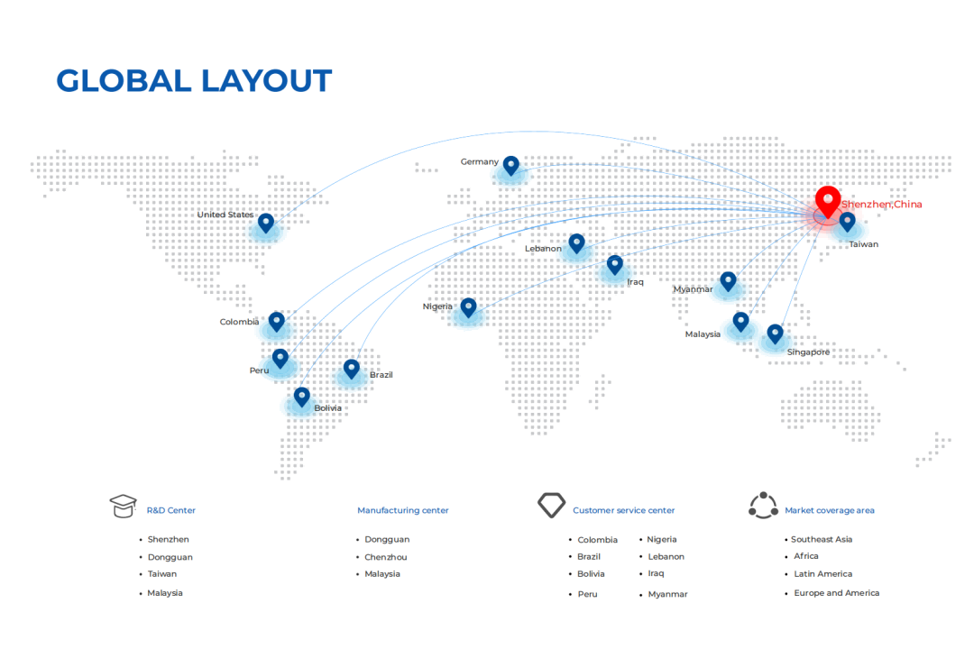 To serve global customers more accurately, Gospower has established a localized service network in key global regions, including: North America (the United States), Europe (Germany), Southeast Asia (Singapore, Myanmar), the Middle East (Lebanon), Africa (Nigeria), and South America (Colombia, Peru). Dedicated offices and marketing service outlets are set up in each region, enabling rapid response to local customers' needs for product inquiries, order fulfillment, and after-sales support.